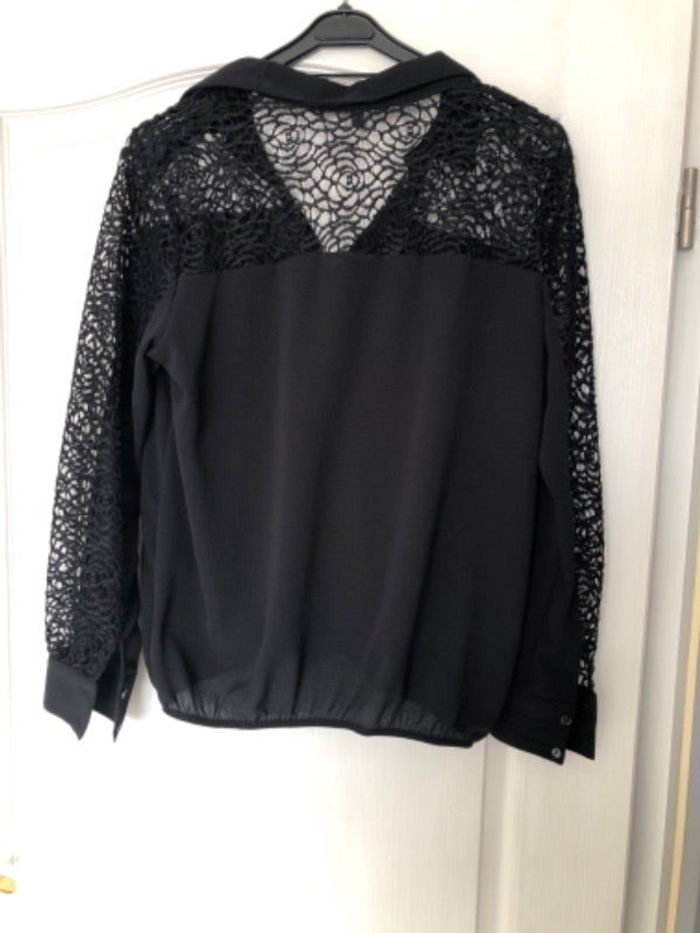 Chemisier noir ajouré élastique à la taille Etat impeccable Jamais porté Largeur épaules 42 cm Largeur taille 52 cm Largeur bas 40 cm Longueur manche 58 cm Hauteur 60 cm
