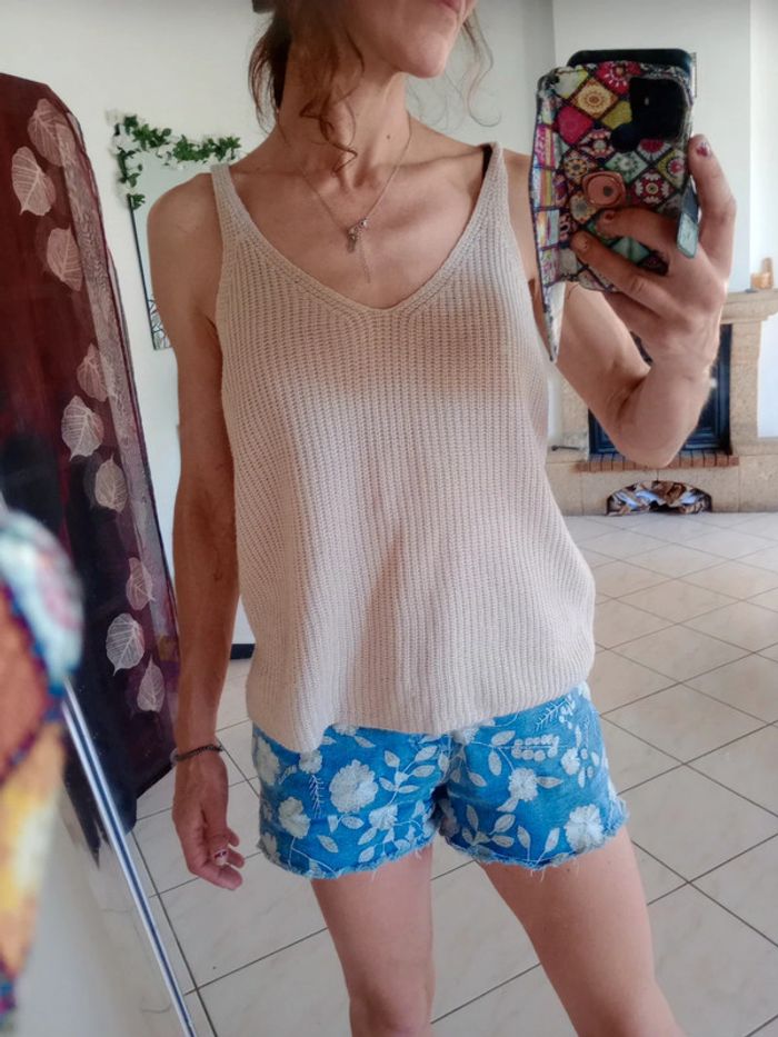 Top femme M mailles vieux rose c84 - photo numéro 7