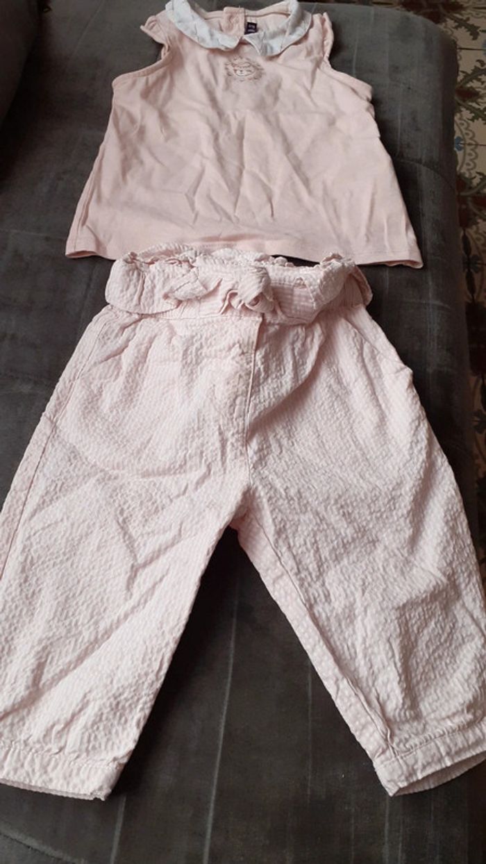 2 ans Débardeur et pantacourt, Tâche bas de col et pantalon (fesses mais ne se voit pas porté)voir photo #vachenou2ans