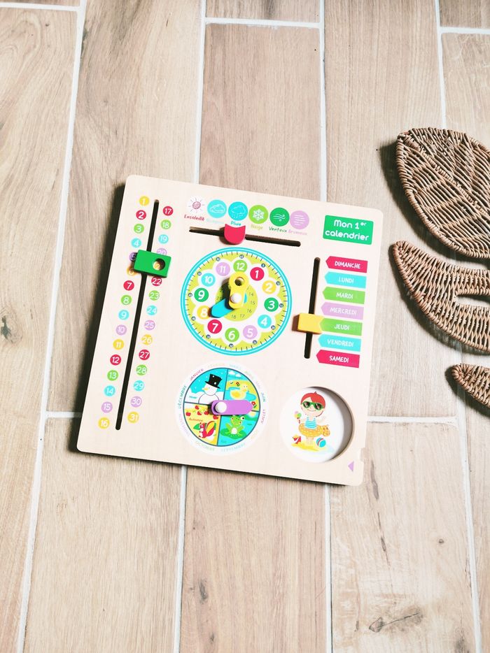 🌞Planche panneau d'activités calendrier perpetuel la météo et le temps en bois JB1047