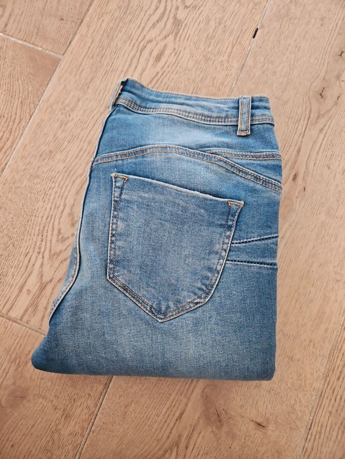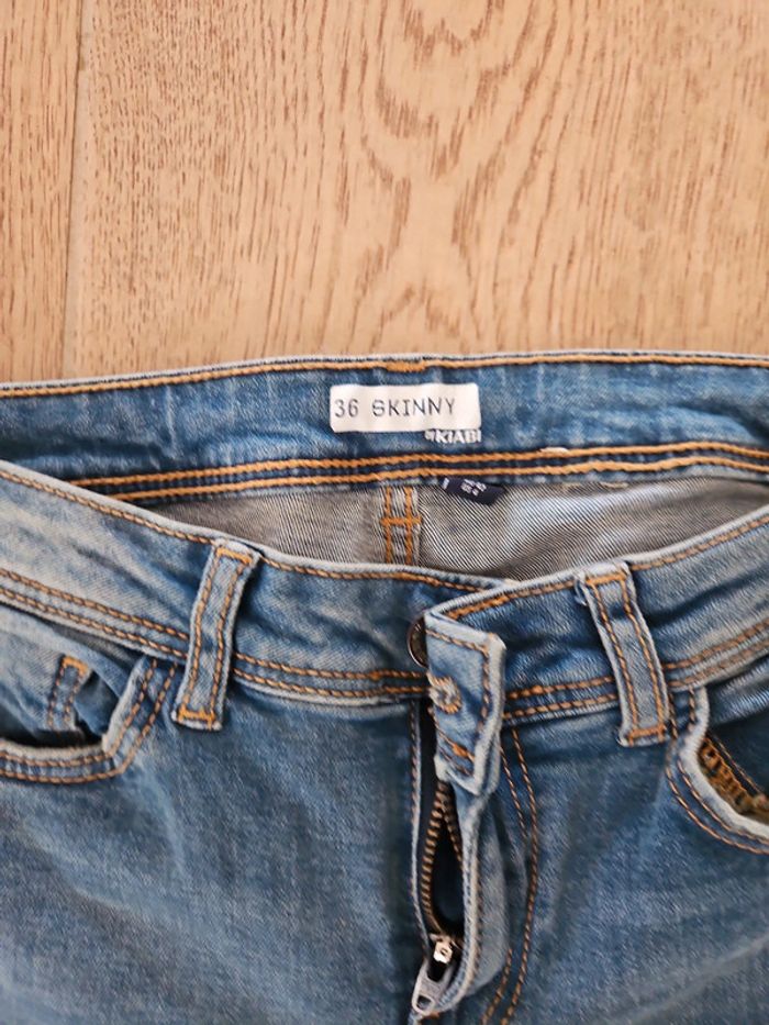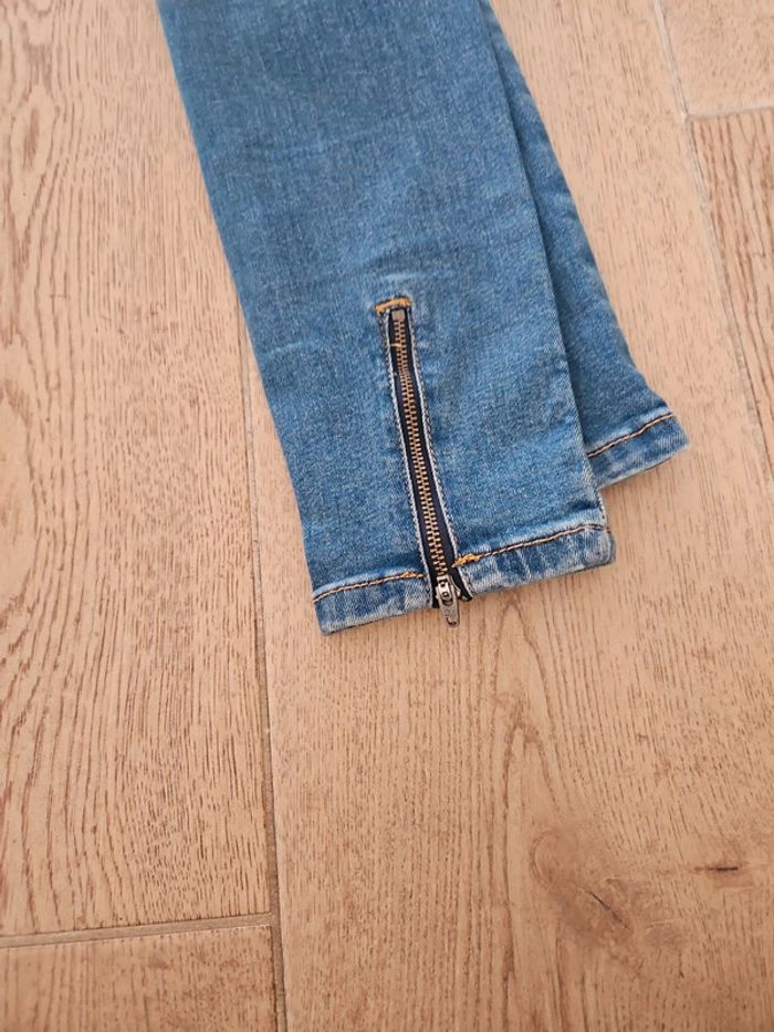 Jean skinny, détail fermeture eclair derrière chaque cheville