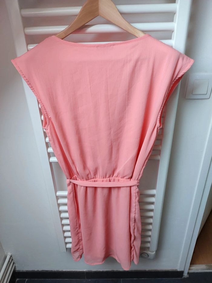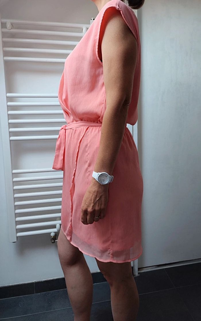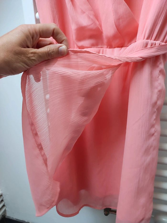 #iansolofemmetaille38 Magnifique robe avec ceinture effet plissée et bas de la robe portefeuille manches courtes Très jolie et chic tissu effet léger Doublée longueur 91 cm