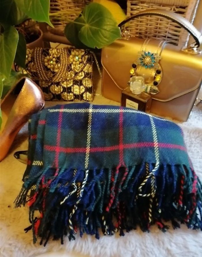 Bonjour acheter et jamais utilisé Dimension 115 x 120 cm. Grande écharpe vert foncé avec carreaux multicolore Possédant d'autres n'hésitez pas à me suivre Activation sur les lots