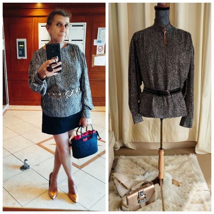 Bonjour activation sur les lots à partir du 2e article de mon dressing ATTENTION indiquer taille S B taille très grand peut convenir jusqu'à une taille 46 48 je pense il y a des dimensions. Épaule 50 cm. Aisselles à aisselles 60 cm. Longueur au plus long 68 cm Elle est sublime et satinée idéale pour vous accompagner tout au long de l'année avec vos tenues un peu comme de la soie. Porter une seule fois elle est dans un excellent état voir état neuf. Possédant d'autres n'hésitez pas à me suivre car beaucoup d'articles à venir Ouverte à toute discussion raisonnable