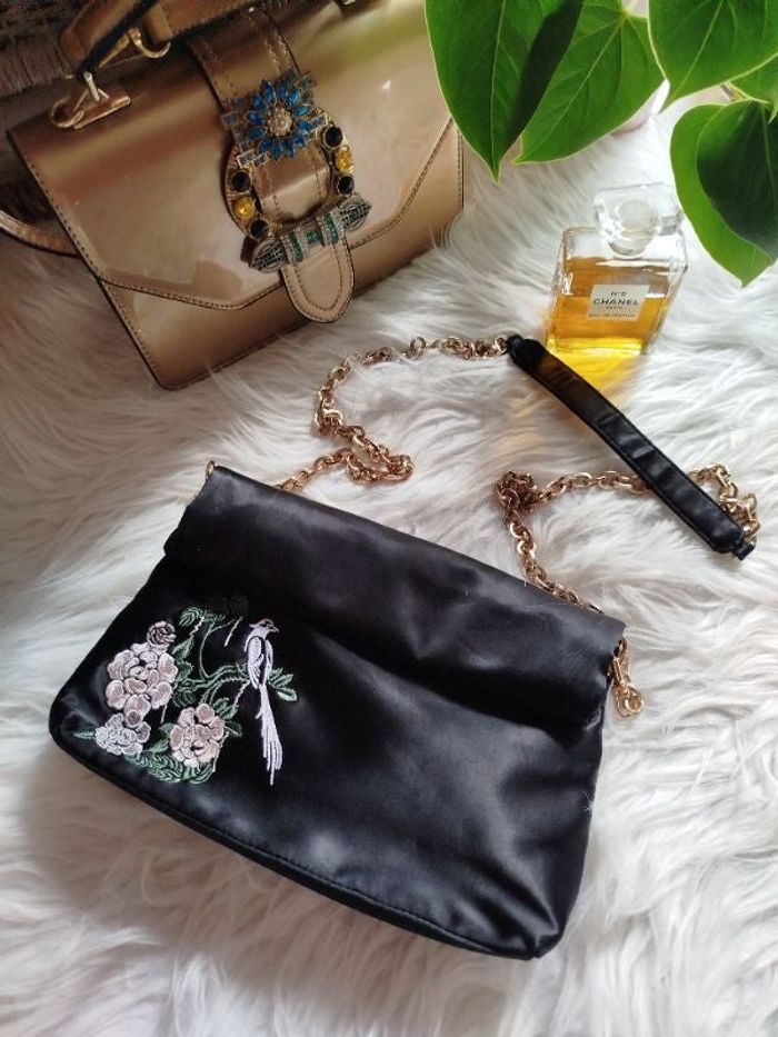Bonjour magnifique sac pochette anti vol. Une fois ouvert se déroule il y a une grande poche de rangement voir photos plus une poche norma devant. Grande chaîne doré le sac et exceptionnel. Idéal pour accompagner vos tenues de soirées ou mariage etc... Dimensions fermé 27 x 18 cm . Ouvert 27 x 30 cm. Possédant d'autres sac car dressing familiale et amicale. N'hésitez pas à me suivre beaucoup d'articles a venir. Activation sur les lots à partir de 2 articles. Ouverte à toute discussion raisonnable.