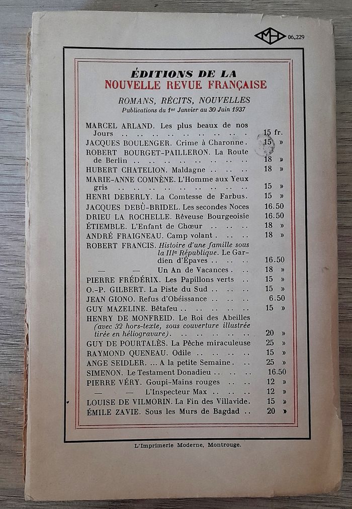 édition 1937 351 pages 19x12cm