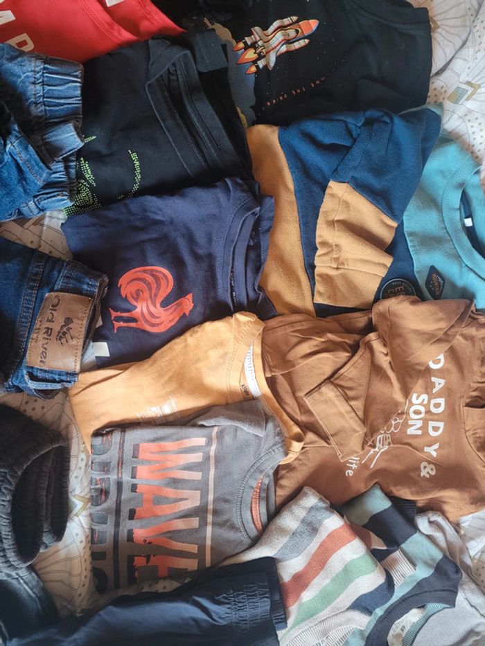 Lot garçon certain neuf. Certain avec des petites tache mais part à la machine ( stocker. ) Haut manche longue , courtes, jeans, joggings , short ..