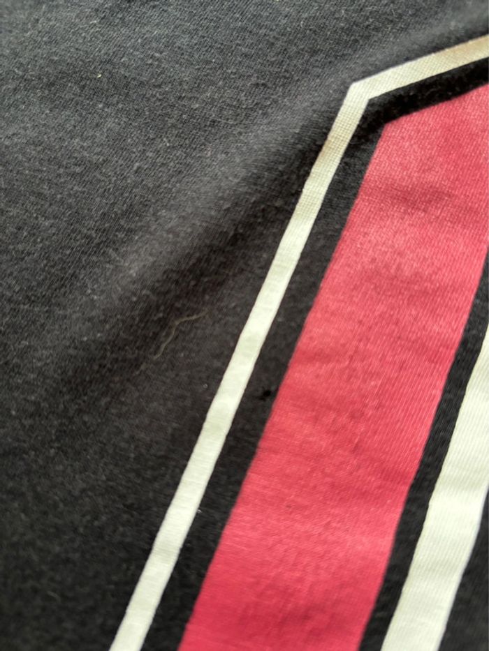 Noir manches courtes. Bouts des manches rayées rouge et blanc Chiffre motif poitrine Petit trou au ventre visible sur photo reste en Tbe Étiquette de composition coupée