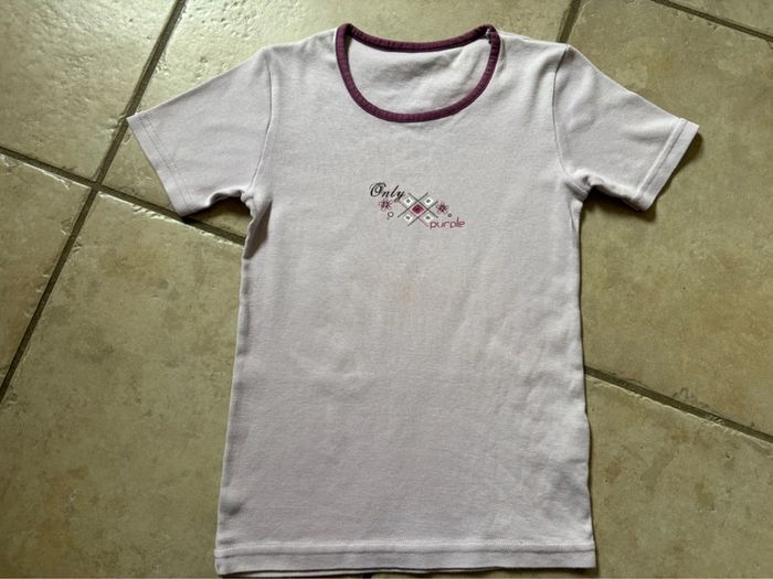 Manches courtes Parme motif poitrine et col violet plus foncé