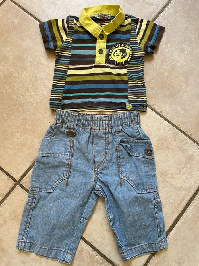 Polo coloré et short en jean souple assorti