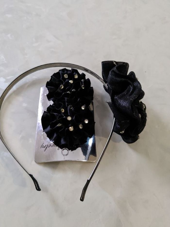 Très joli ensemble composé d'un serre tête et de 2 pinces. Peuvent être vendus séparément à 5 euros l'unité. N'hésitez pas à me demander pour créér l'annonce de l'article qui vous intéresse.