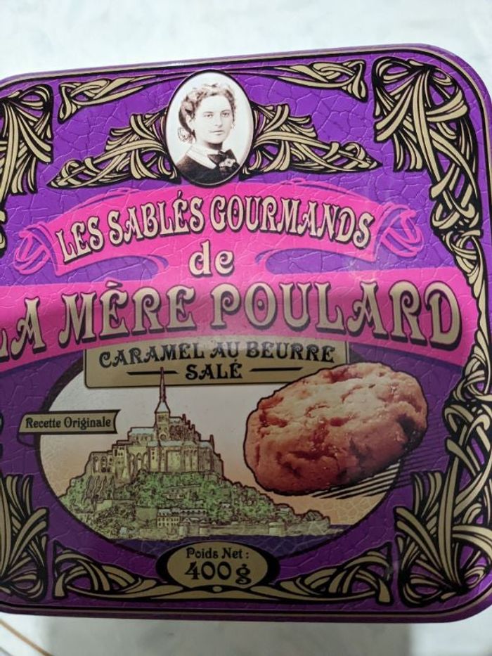 Jolie boîte métallique à biscuits de la mère Poulard.Mint saint Michel.