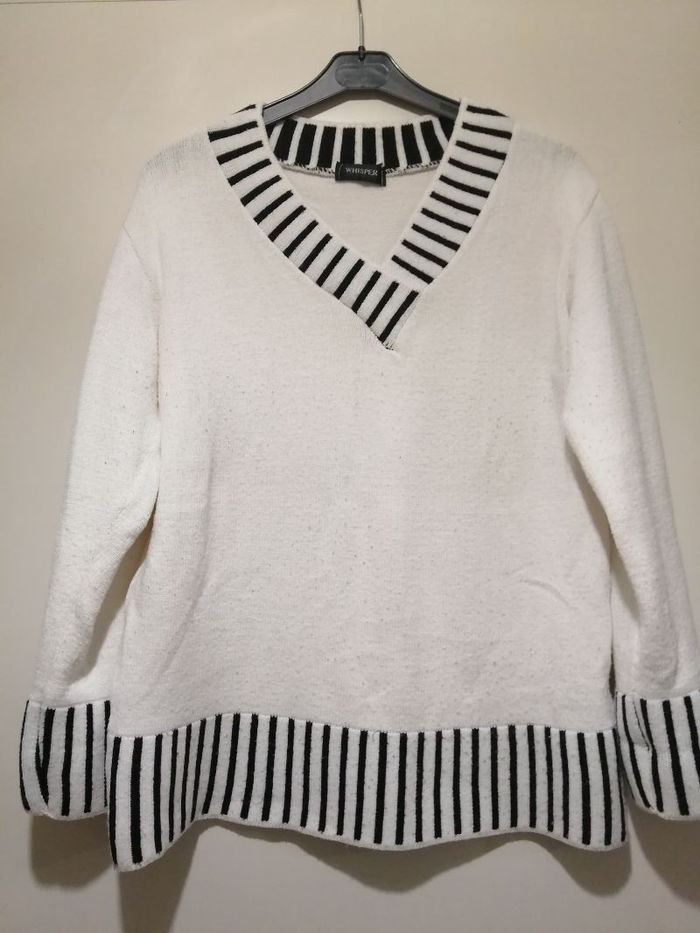 Pull hiver Vintage Whisper blanc et noir. Taille M
