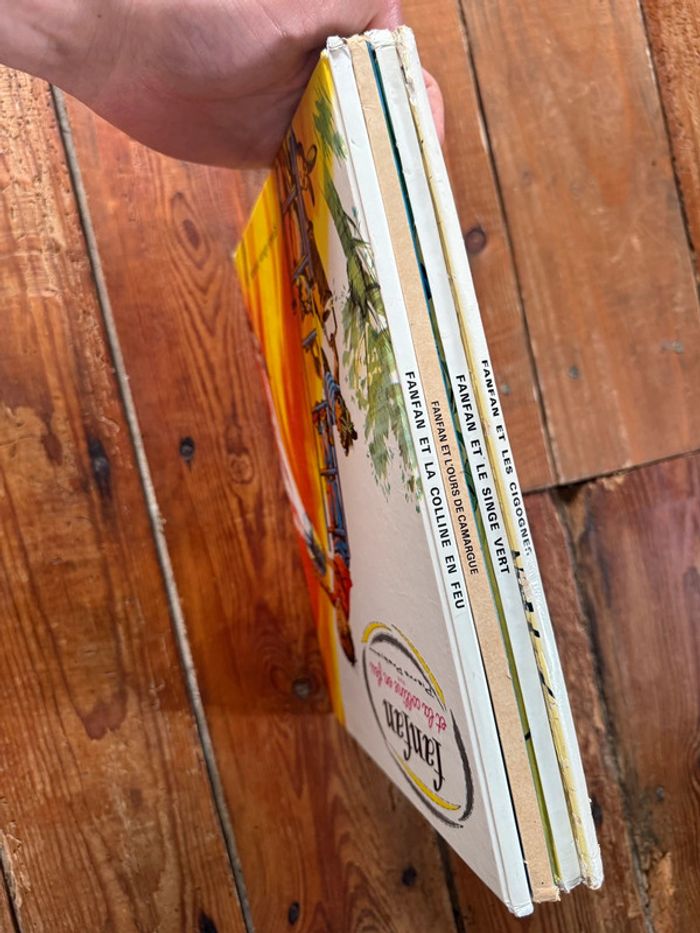 Lot indissociable et non négociable de livres vintage aux illustrations magnifiques : 🩵🎉 Fanfan et les cigognes Fanfan et le singe vert Fanfan et l’ours de Camargue Fanfan et la colline en feu