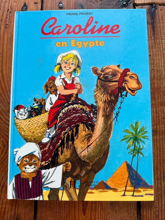 Très bel état livre vintage Caroline en Égypte Hachette jeunesse bleu