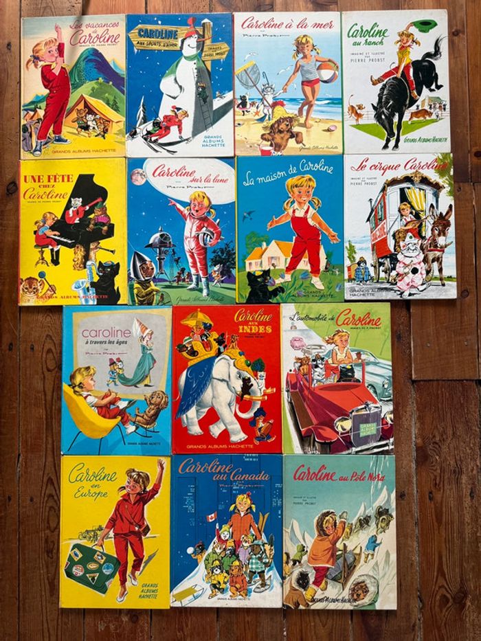 Intégrale collection complète. Ces livres ont plus de 60 ans et sont tous COMPLETS ! Avec l’humour et les illustrations exceptionnels de Pierre Probst. Ils sont tous en TRÈS BON ÉTAT ce qui est rarissime sur cette série très ancienne. Envoi rapide et très soigné. 🎉☺️ Lot non dissociable et non négociable comportant : Les vacances de Caroline Caroline aux sports d’hiver Caroline à la mer Caroline au ranch Une fête chez Caroline Caroline sur la Lune La maison de Caroline Caroline au cirque Caroline aux Indes Caroline à travers les âges L’automobile de Caroline Caroline en Europe Caroline au Canada Caroline au Pôle Nord