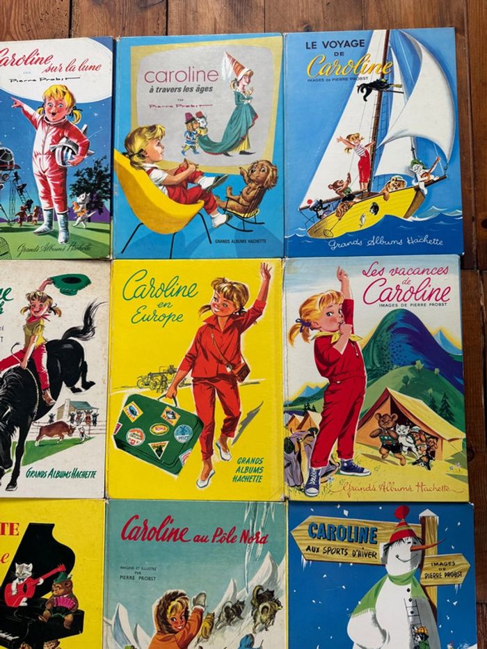 Ces livres ont plus de 60 ans et sont tous COMPLETS ! Avec l’humour et les illustrations exceptionnels de Pierre Probst. Envoi rapide et très soigné. 🎉☺️ Lot non dissociable et non négociable comportant : Caroline au ranch Le voyage de Caroline Caroline à travers les âges Caroline sur la lune Caroline aux Indes Caroline en Europe Les vacances de Caroline Une fête chez Caroline L’automobile de Caroline La maison de Caroline Le cirque Caroline Caroline aux sports d’hiver Caroline à la mer Caroline au pôle Nord