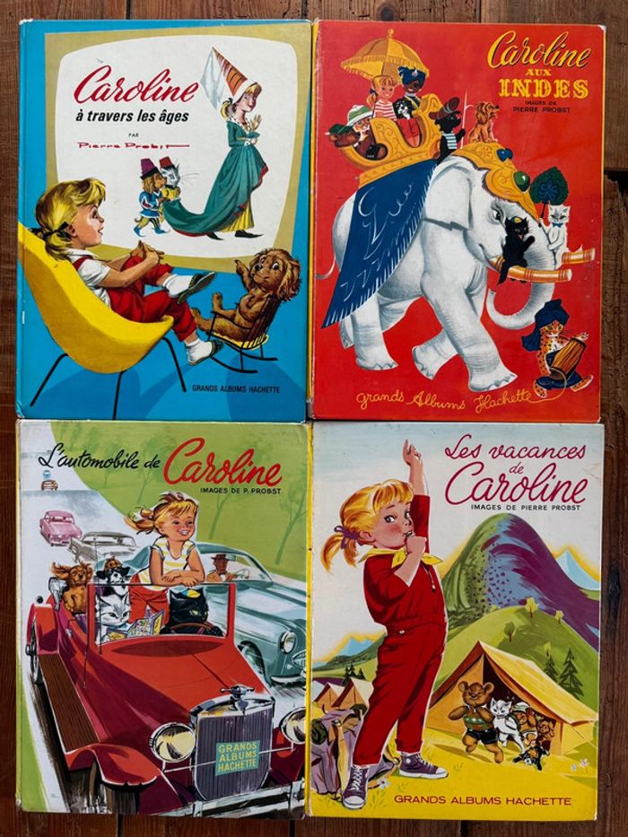 Bon état - 4 Livres Caroline années 50/60 Lot Grands albums Hachette Pierre Probst