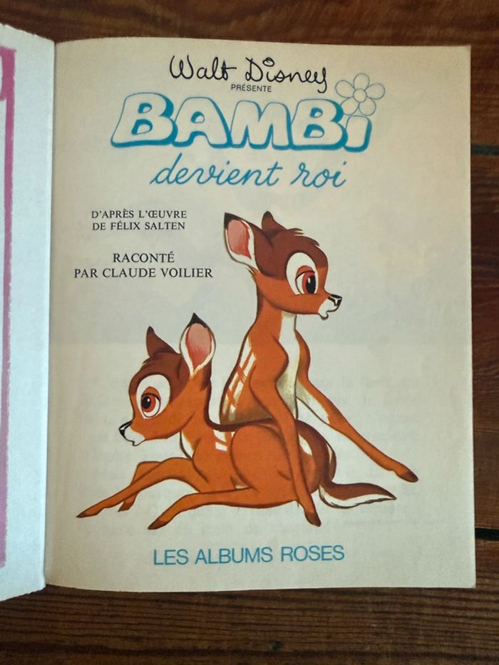 Livre ancien vintage Walt Disney Bambi devient Roi les albums roses Felix Salten Claude Voilier
