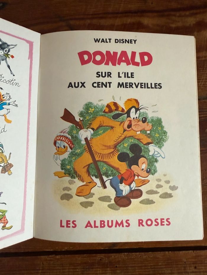 Livre ancien vintage Donald sur l’île aux cent merveilles les albums roses Walt Disney