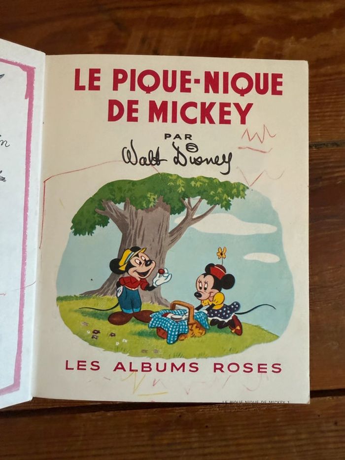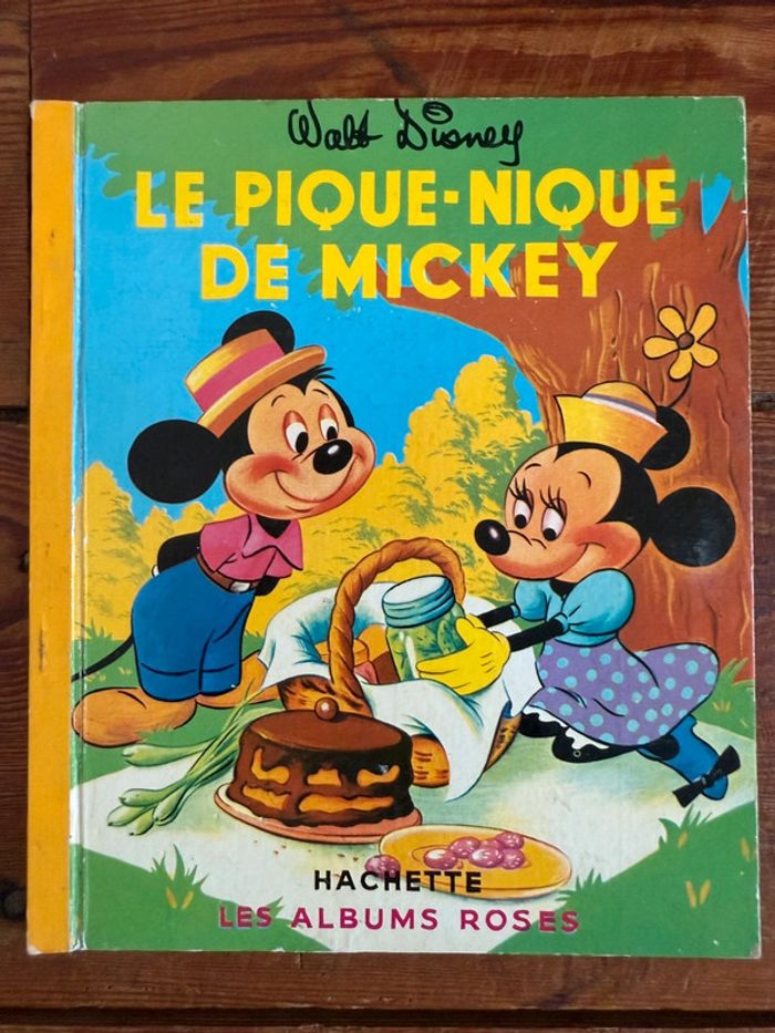 Livre ancien vintage Walt Disney Le Pique-Nique de Mickey Hachette les albums roses