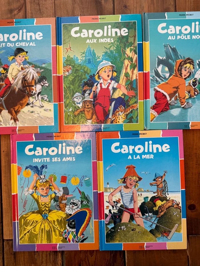 Envoi rapide et très soigné!! État MOYEN Satisfaisant cf photos Ils sont tous de la même série bords multicolores damiers 🎉✅☺️🧡🩵 Lot non négociable et non dissociable comportant les titres suivants : Caroline invite ses amis Caroline fait du cheval Caroline aux Indes Caroline à la mer Caroline au pôle Nord