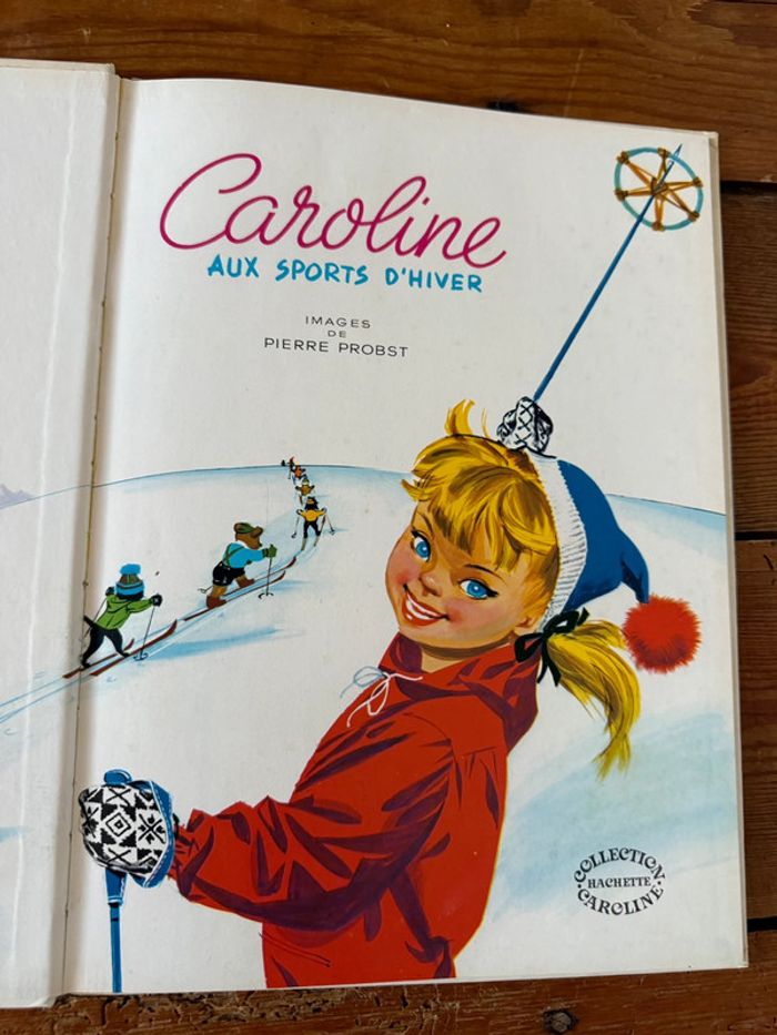 Très bon état - Grand livre ancien vintage Caroline aux sports d’hiver Pierre Probst blanc Hachette