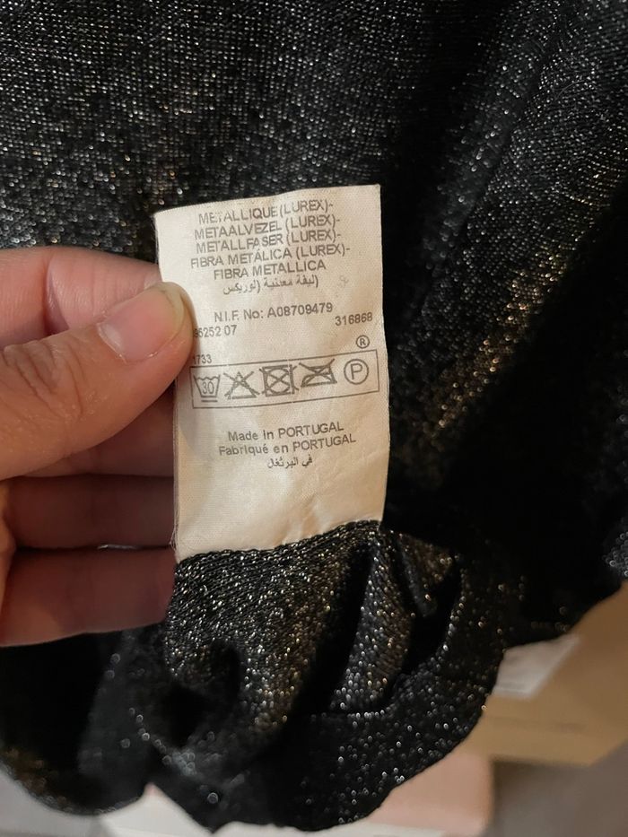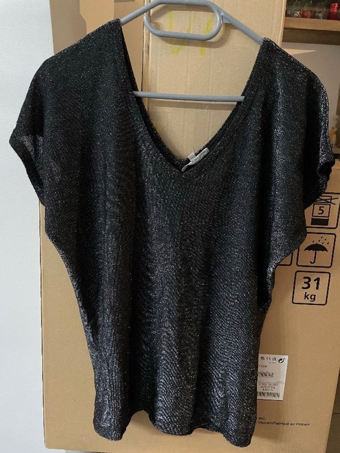 T shirt noir irisé paillettes Manches courtes col en V Taille S de chez Etam