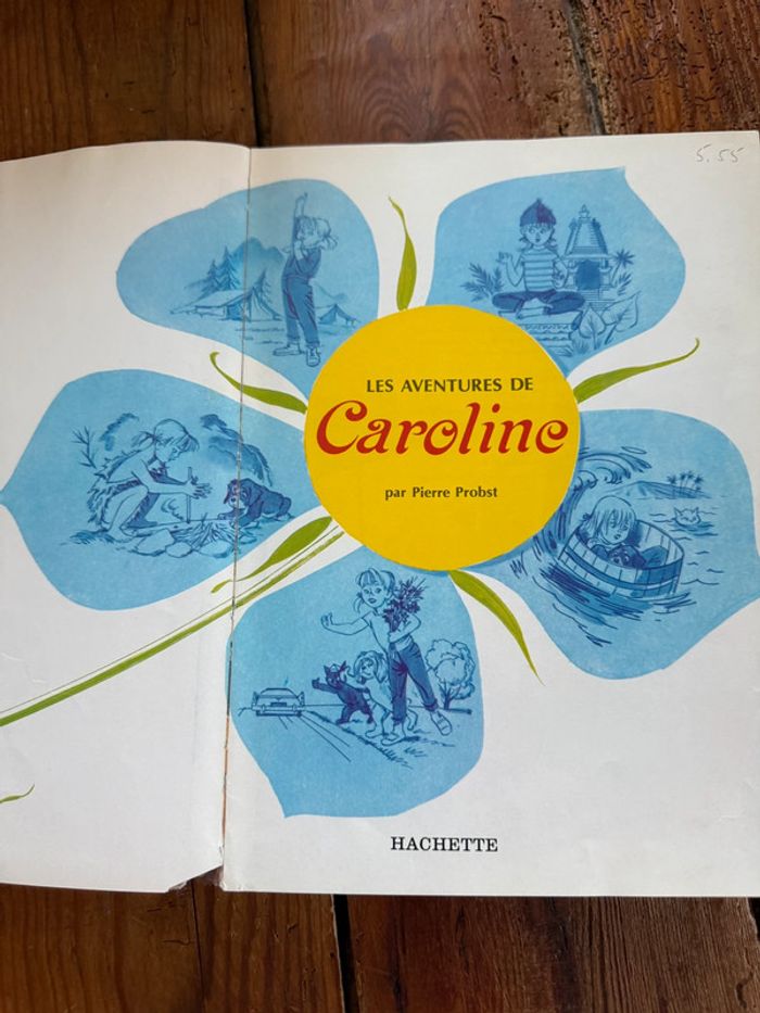 Grand beau livre ancien vintage Les aventures de Caroline album Hachette blanc cadre