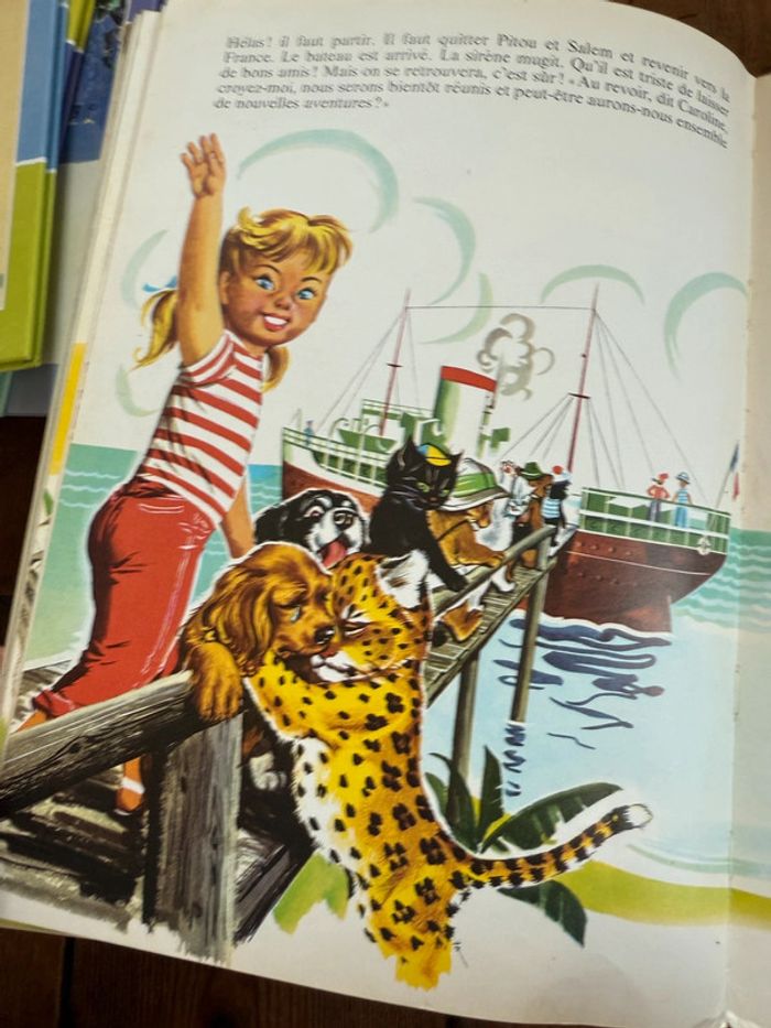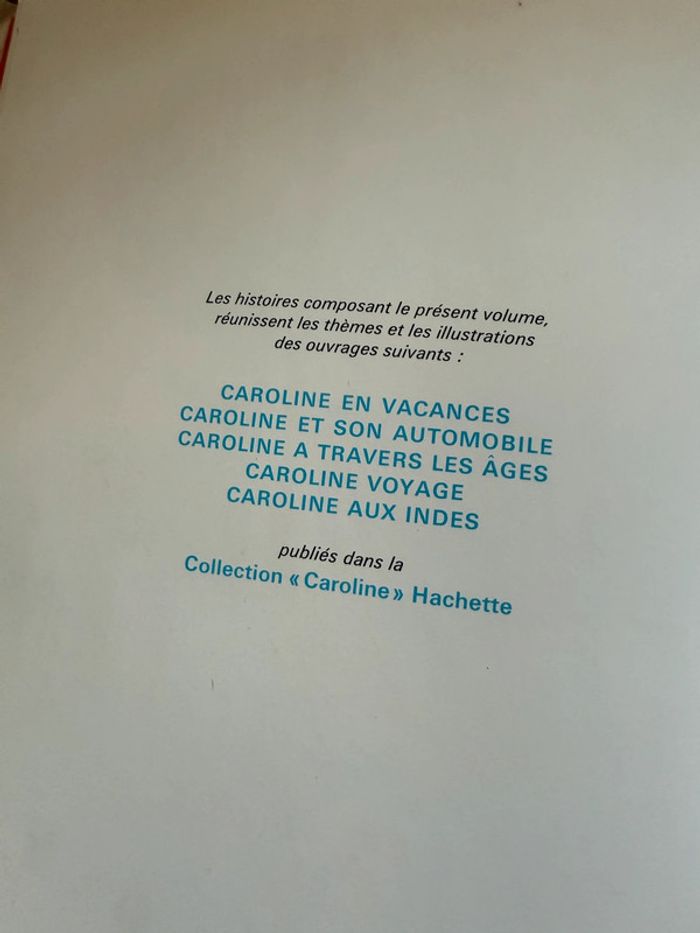 Ouvrage ancien de 1974 retraçant 5 histoires Caroline : - en vacances - et son automobile - à travers les âges - voyage - Aux Indes En très bon état pour un livre si ancien SAUF la tranche qui est absente cf photos. Album très rare. Envoi rapide et soigné. Non négociable ☺️🙏🙏