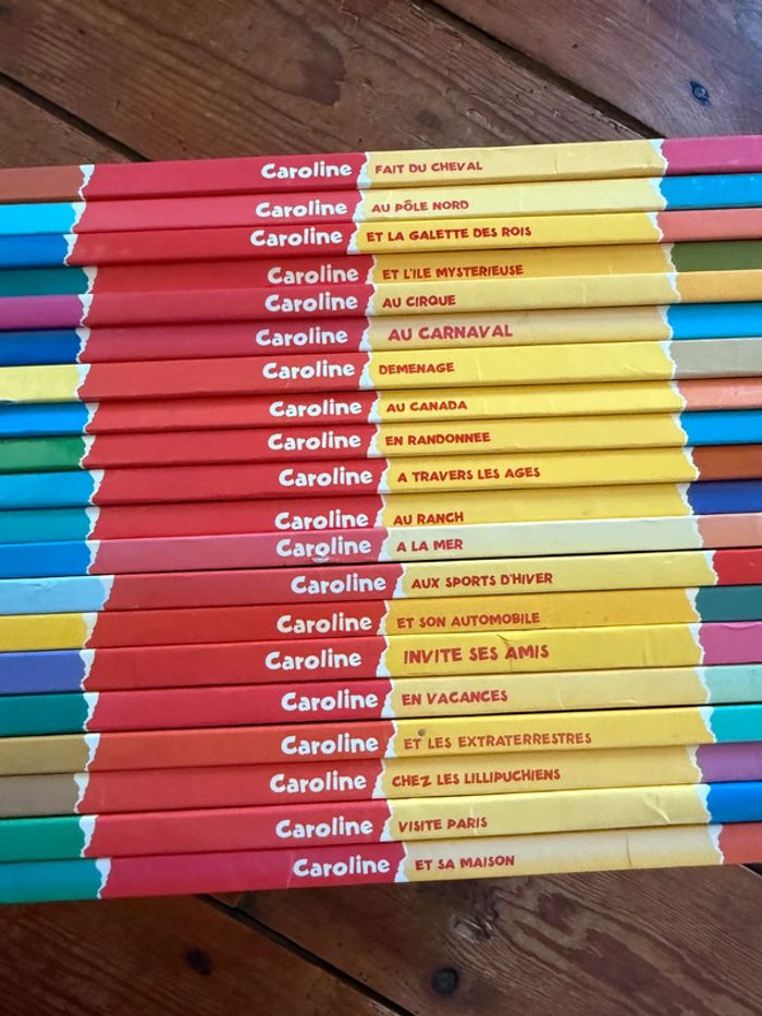 Envoi rapide et très soigné 🙏☺️ Lot non négociable et non dissociable comportant les titres suivants : Caroline fait du cheval Au pôle Nord Et la galette des rois Et l’île mystérieuse Au cirque Au carnaval Déménage Au Canada En randonnée À travers les âges Au ranch À la mer Aux sports d’hiver Et son automobile Invite ses amis En vacances Et les extraterrestres Chez les lillipuchiens Visite Paris Et sa maison