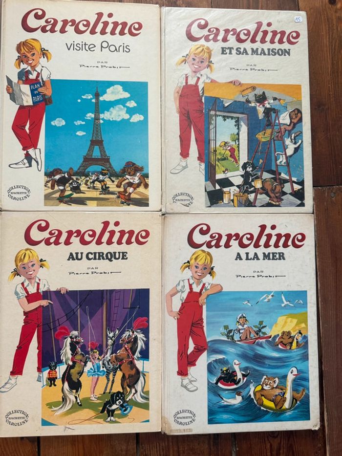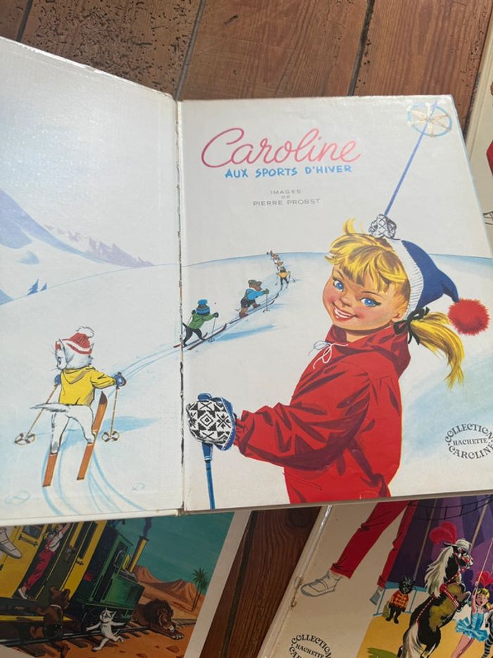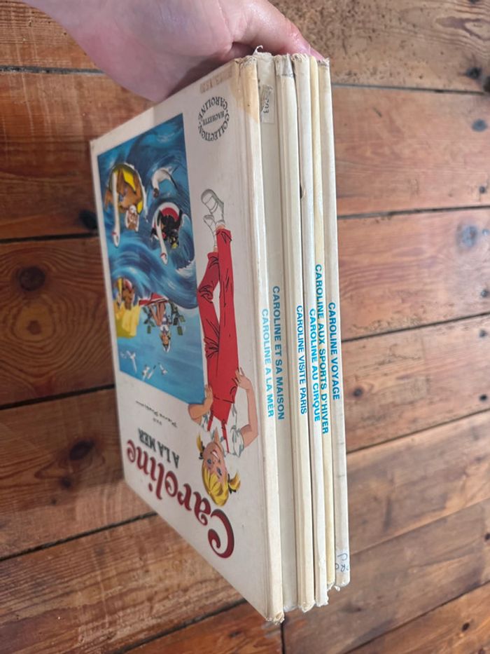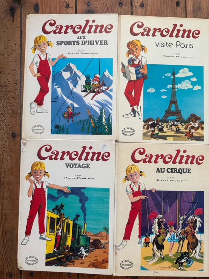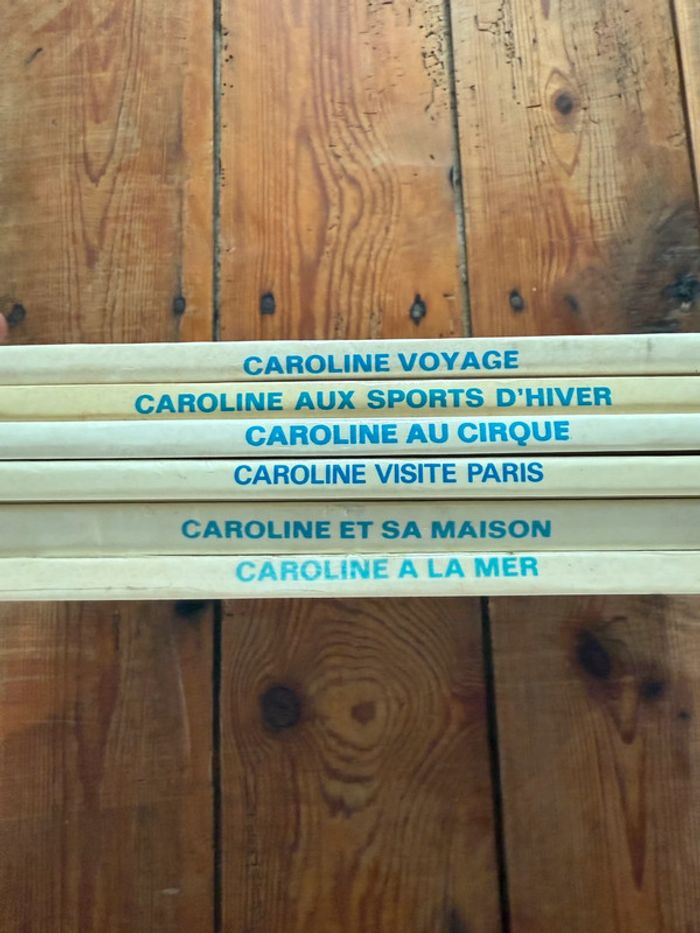 Envoi rapide et soigné Livres COMPLETS et en état satisfaisant moyen cf photos. Lot non dissociable et non négociable comprenant les titres suivants : Caroline voyage Caroline aux sports d’hiver Caroline au cirque Caroline visite Paris Caroline et sa maison Caroline à la mer