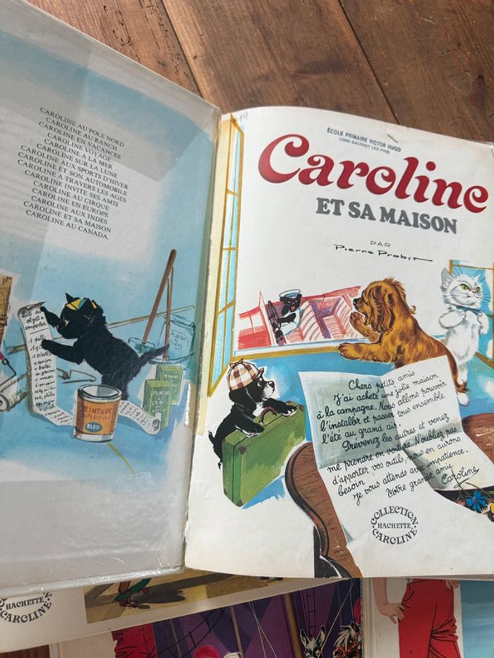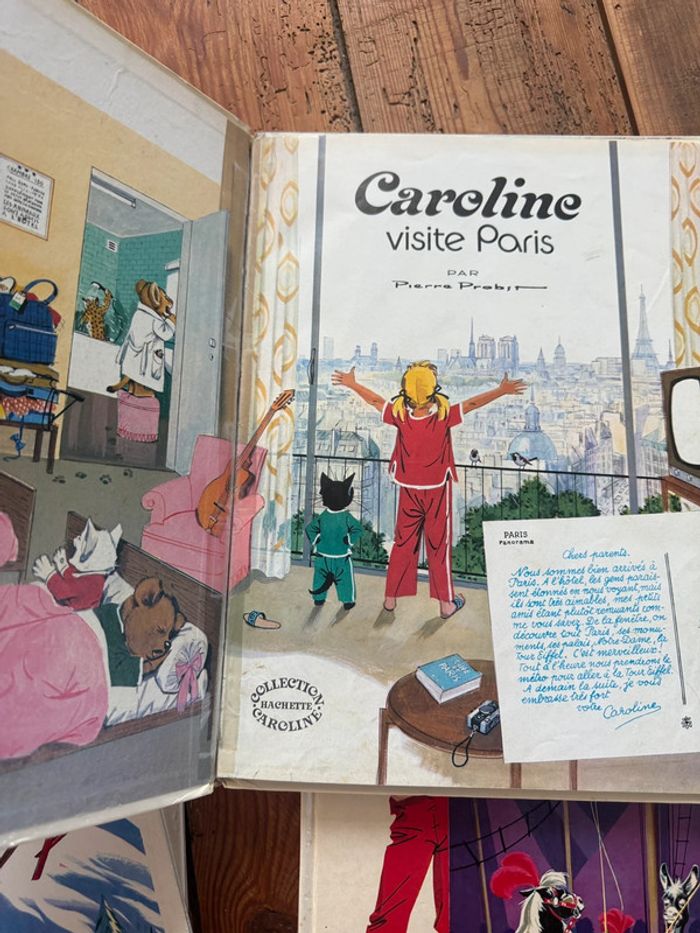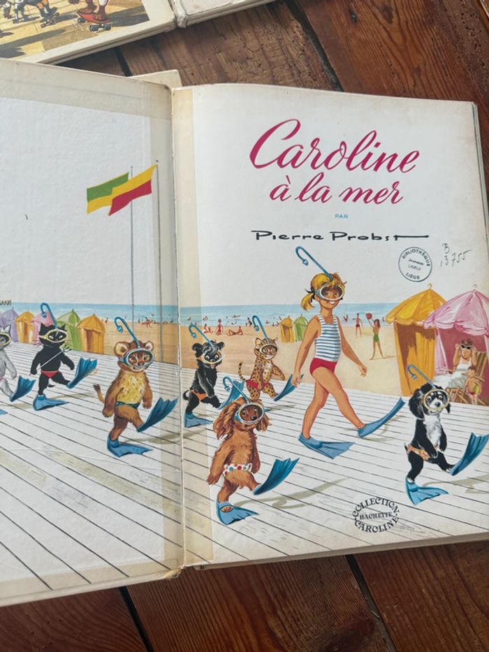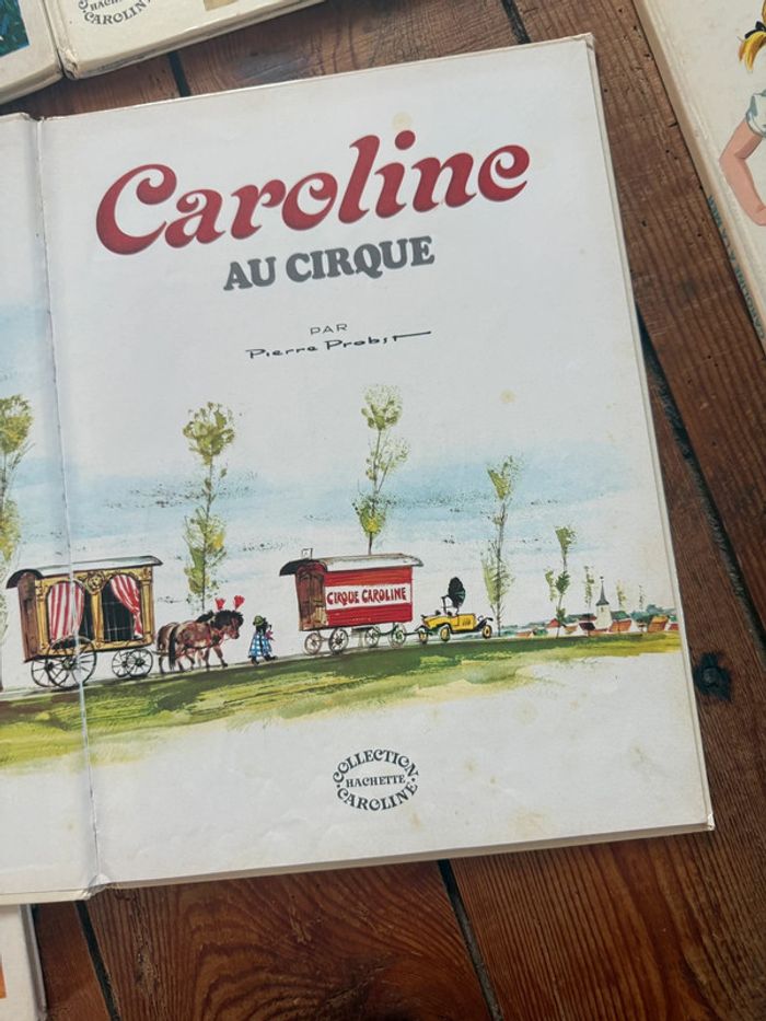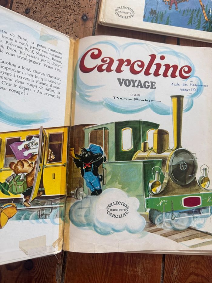 Envoi rapide et soigné Livres COMPLETS et en état satisfaisant moyen cf photos. Lot non dissociable et non négociable comprenant les titres suivants : Caroline voyage Caroline aux sports d’hiver Caroline au cirque Caroline visite Paris Caroline et sa maison Caroline à la mer