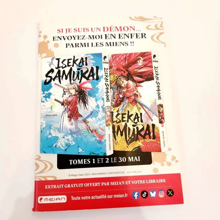 Je vends cet extrait du manga "Samurai in Another World" ! 🌸 🌟 Caractéristiques : - Titre : Isekai Samurai - Extrait - Éditeur : Meian - Type : Shonen - État : Neuf - Édition : Standard - Synopsis : "Ginko, samouraï invincible de l’ère Sengoku, rêve de mourir au combat. Mais alors qu’elle implore Bouddha de lui accorder la mort, elle se retrouve propulsée dans un monde fantasy rempli de monstres… Un nouveau champ de bataille pour celle que rien ne peut abattre !" Possibilité de l'obtenir à 0.50e en cas de lot. D'autres mangas et extraits sont en vente sur mon compte ! Voici des tags pour vous aider à explorer mon dressing : #miyako_mangas #miyako_isekaisamura #miyako_japanexpo #miyako_shonen #miyako_meian #miyako_animanga 🪷 📍Je privilégie Mondial Relay, car le point relais est à côté de chez moi. Les autres modes d’envoi sont désactivés. Cependant, si vous n’avez pas de Mondial Relay proche de chez vous, n’hésitez pas à me contacter, et je ferai de mon mieux pour trouver une solution d’expédition. Si vous avez besoin de renseignements supplémentaires, n'hésitez pas ! 😊 🌷 Tags : #manga #animanga #anime #collection #otaku #manganime #japanimation #onepiece #naruto #dragonball #bleach #hunterxhunter #fairytail #myheroacademia #jujutsukaisen #demonslayer #blackclover #fruitsbasket #sailormoon #nana #vampireknight #aoharuride #maidsama #kiminitodoke #berserk #deathnote #tokyoghoul #attackontitan #vinlandsaga #thepromisedneverland #rezero #swordartonline #tensura #mushokutensei #overlord #shieldhero #konosuba #oshinoko #evangelion #haikyuu #kurokonobasket #bluelock #kaguyasama #tomie #chainsawman #fullmetalalchemist #fma #onepunchman #tokyorevengers #codegeass #drstone #spyxfamily #yourname #toradora #steinsgate #erased #monster #higurashi #madokamagica #japanexpo