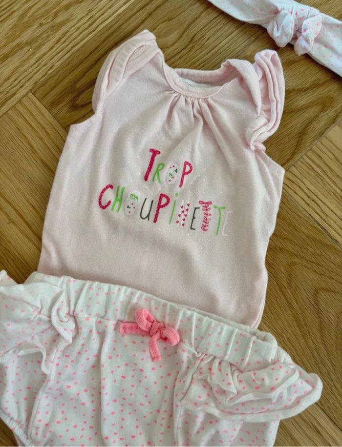 • Tenue Gemo composée d’un body sans manche, d’un bloomer et d’un bandeau • Taille 1 mois • En parfait état • Article en excellent état, sans taches ni défauts. ✨ Remise possible si vous prenez plusieurs articles – n’hésitez pas à me contacter pour un lot ! • Envoi rapide et soigné 📦 • D’autres vêtements dispo sur mon profil 👗👚