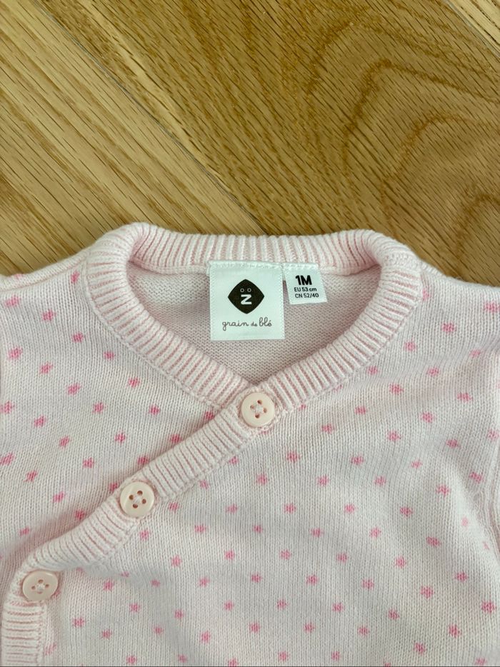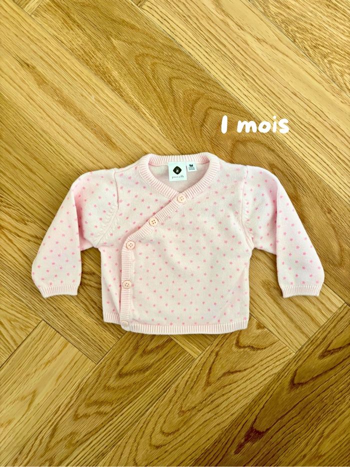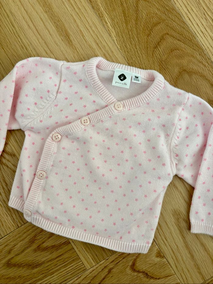 • Brassière / Gilet Grain de Blé en maille avec motif étoiles • Taille 1 mois • En très bon état, comme neuf • Article en excellent état, sans taches ni défauts. ✨ Remise possible si vous prenez plusieurs articles – n’hésitez pas à me contacter pour un lot ! • Envoi rapide et soigné 📦 • D’autres vêtements dispo sur mon profil 👗👚