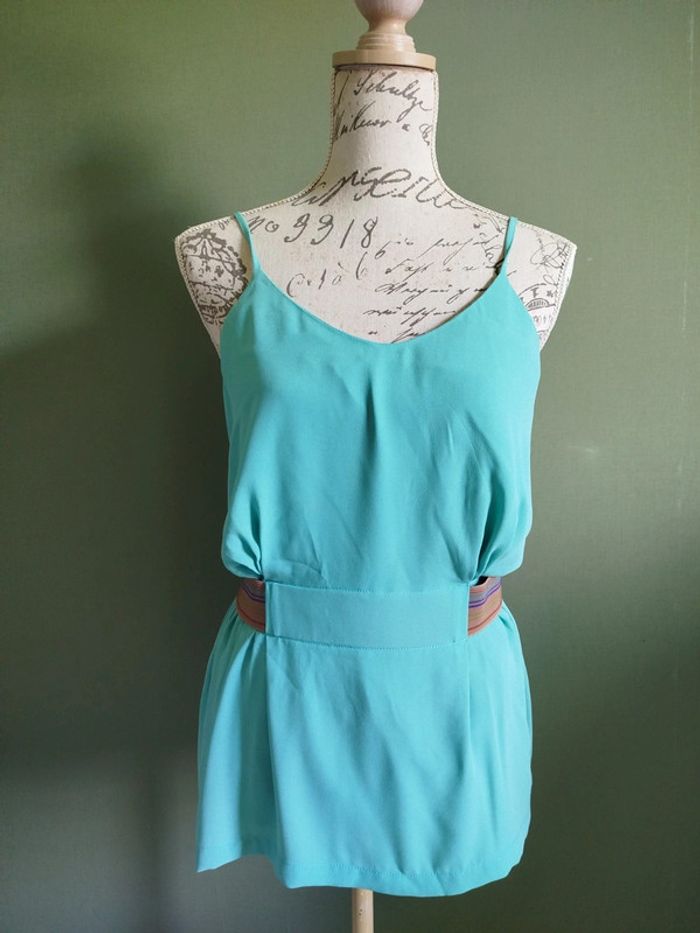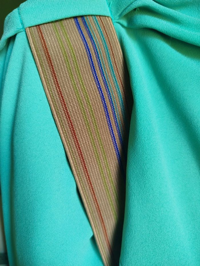 Blouse verte, ceinture élastique marron à rayures multicolores. See U Soon, Taille 1. Taille grand. Tous les articles de cette taille dans mon dressing : #laurined61_sfemme #laurined61_mfemme G153