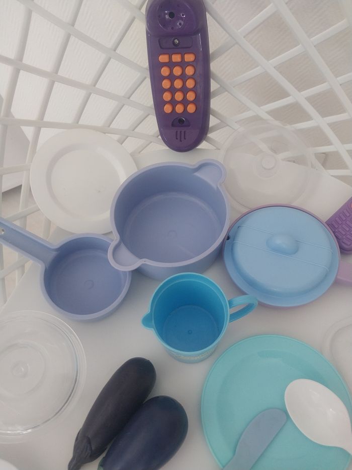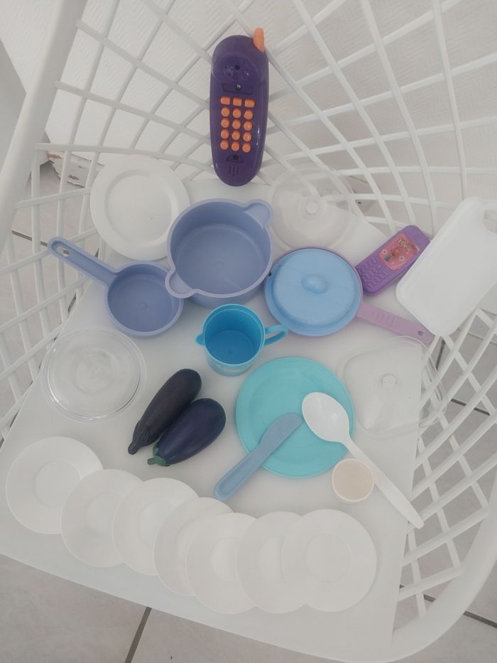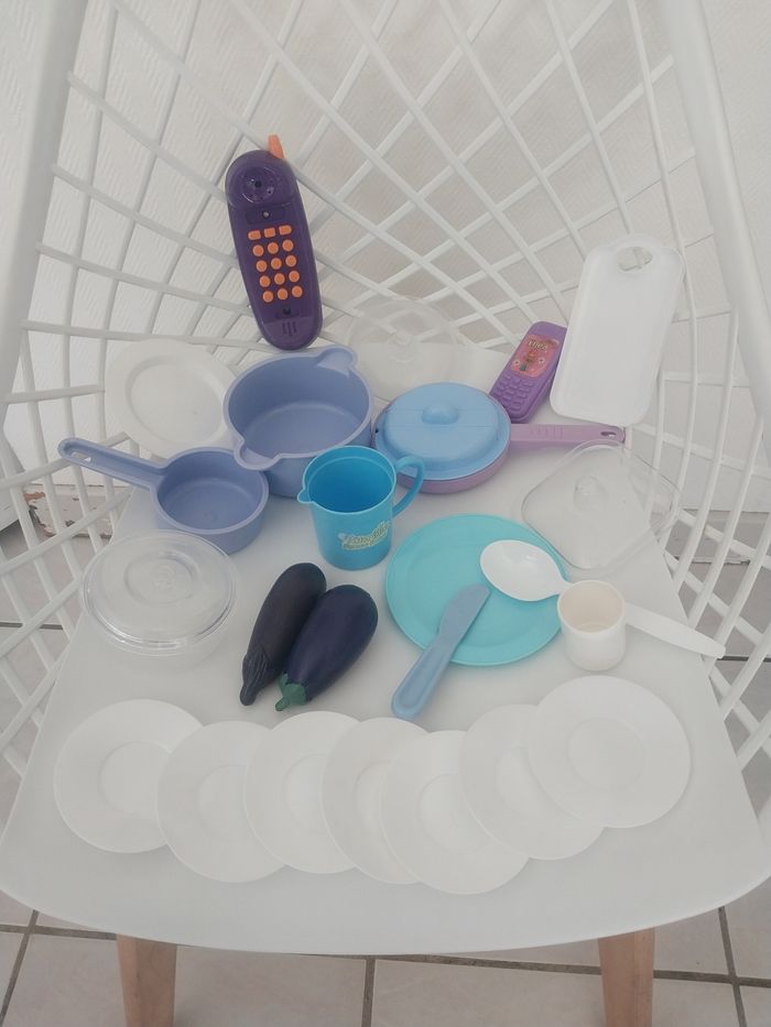 Charmant lot dépareillé en plastique coloré, parfait pour les jeux d’imitation 👩🍳🍆📞