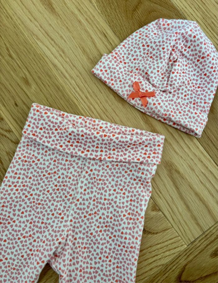 • Ensemble legging et bonnet motif cœurs de la marque H&M • Taille 3 mois • En très bon état • Article en excellent état, sans taches ni défauts. ✨ Remise possible si vous prenez plusieurs articles – n’hésitez pas à me contacter pour un lot ! • Envoi rapide et soigné 📦 • D’autres vêtements dispo sur mon profil 👗👚