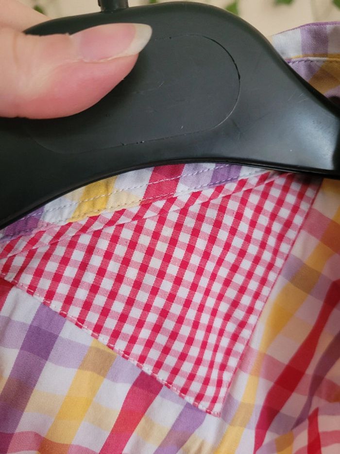 Chemise en très bon état , il y a le logo en bas de la chemise mais l'étiquette en haut a été décousu on voit la trace d'une ancienne étiquette , je préfère le préciser et tout mettre en photo pour ne pas être embêté