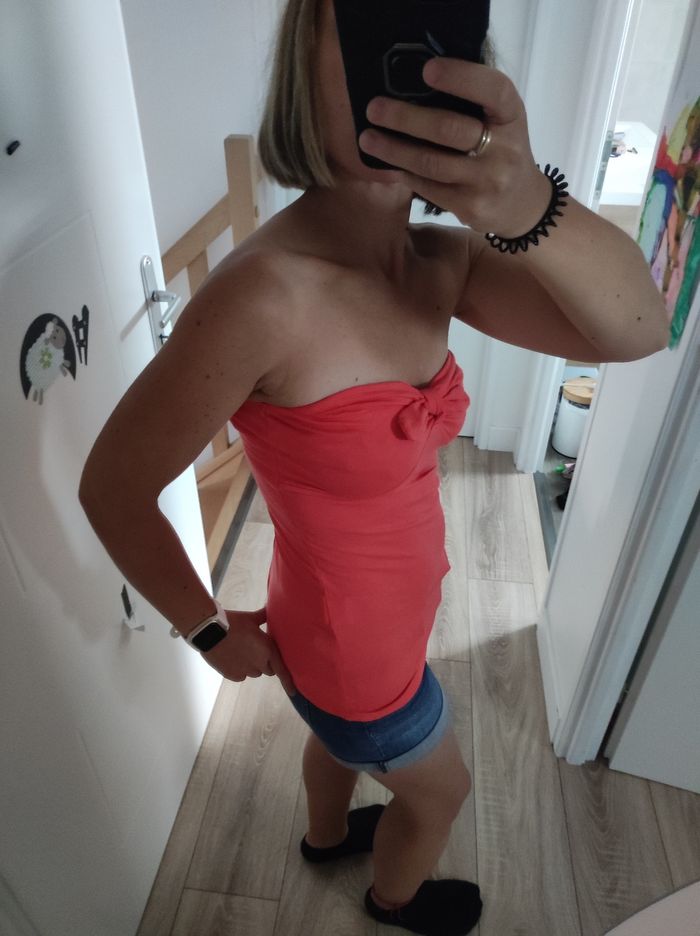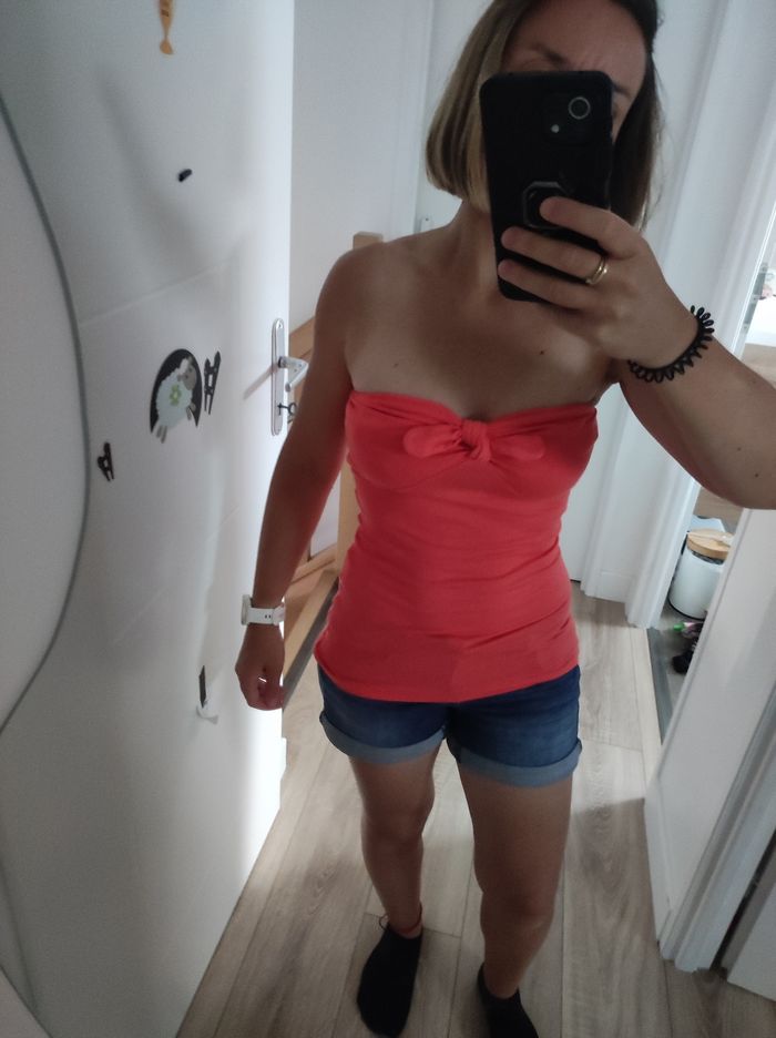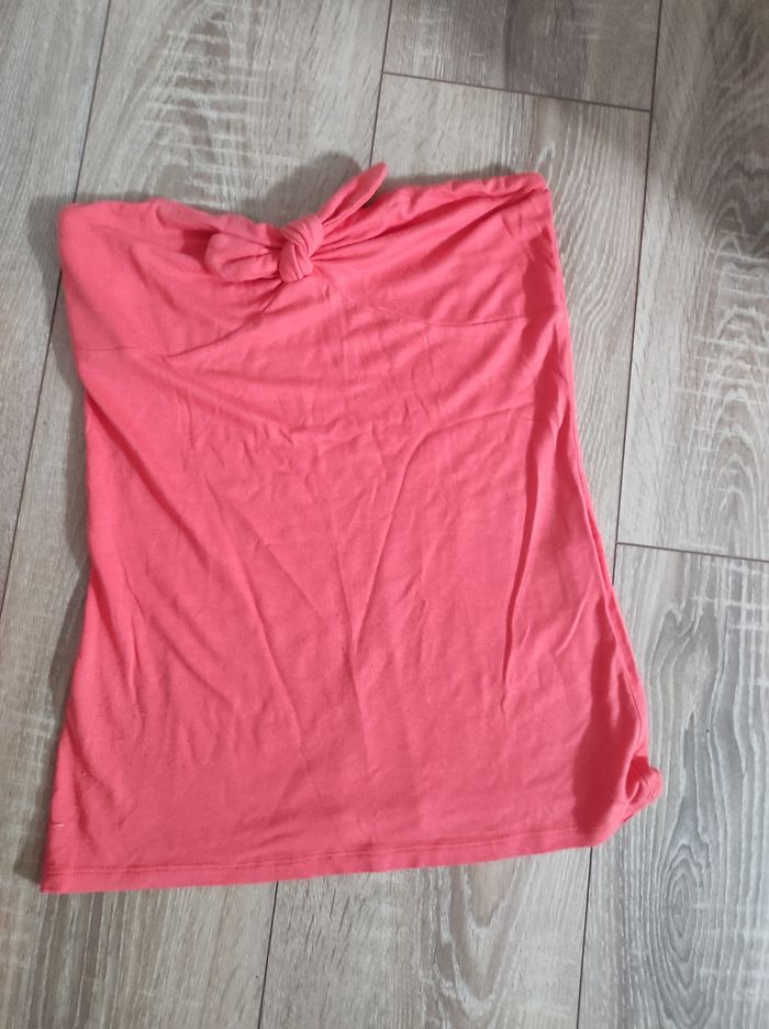 Débardeur rose bustier pimkie petit noeud à faire sur le devant. Taille M mais taille plutôt S et assez moulant. Présente quelques bouloches sur le tissu voir photos