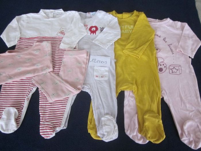 12 mois, 5 pyjamas coton dont un 2 pièces, kiabi, lin des vosges, obaibi, petit kimbaloo