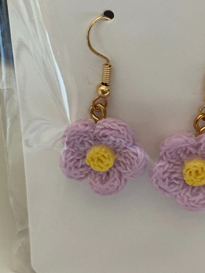 Boucles d’oreilles fleurs violette - photo numéro 2