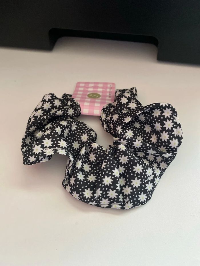 Chouchou noir à fleurs blanches