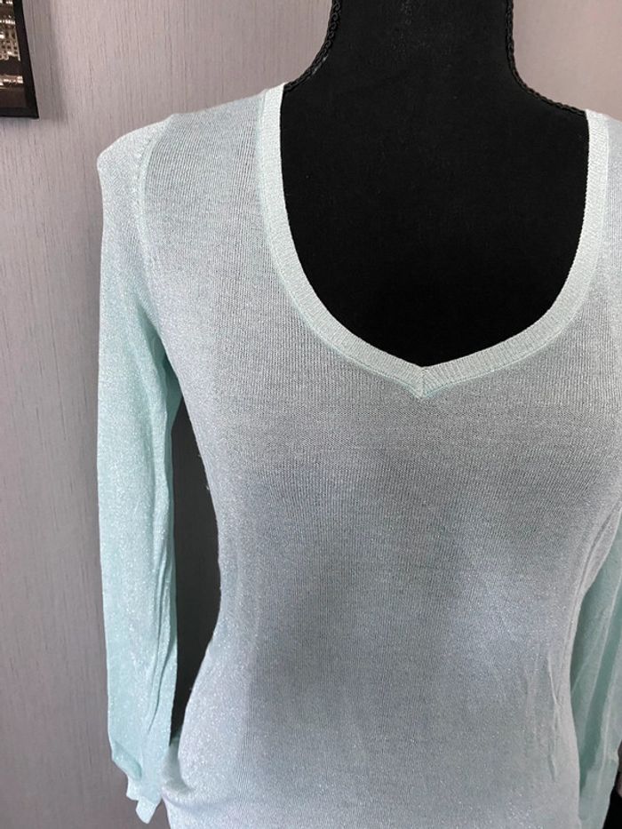 Camaïeu Pull léger en V vert menthe brillant Taille 2 - photo numéro 5