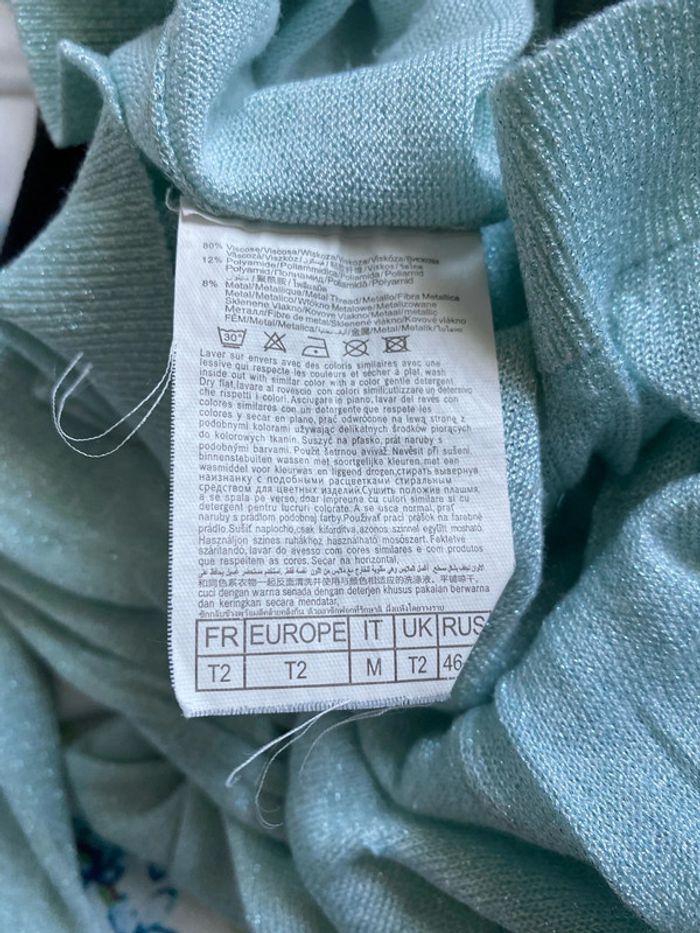 Camaïeu Pull léger en V vert menthe brillant Taille 2 - photo numéro 2