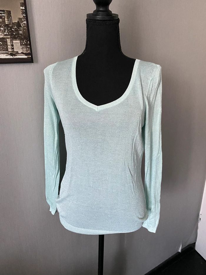 Camaïeu Pull léger en V vert menthe brillant Taille 2 - photo numéro 1