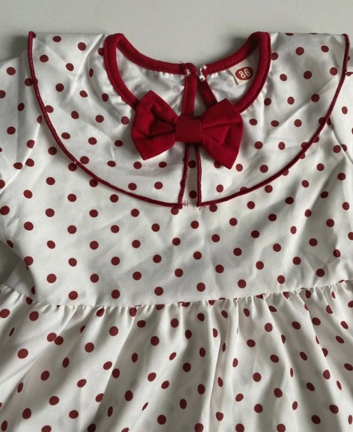 Tres jolie Robe blanche à pois rouge col Claudine - photo numéro 2
