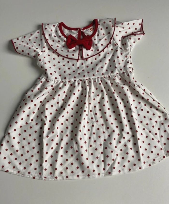 Tres jolie Robe blanche à pois rouge col Claudine - photo numéro 1