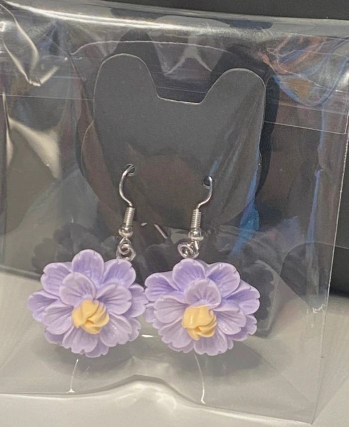 Boucles d’oreille forme fleurs violettes